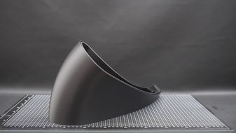 Traktrix-Horn: Diese Kontur basiert auf der "Schleppkurve". Das wesentliche Merkmal ist, dass die Hornwand am Hornmund exakt in einem 90-Grad-Winkel zur Mittelachse endet. Sie schmiegt sich quasi fließend an die Schallwand an.