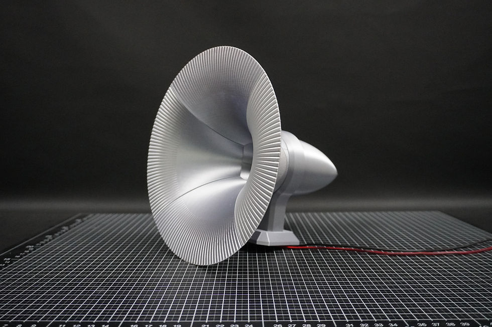 Der FRS5X Waveguide in der V3 wird in 2 unterschiedlichen Varianten angeboten. Bei der Version "Treiberabdeckung offen sitz der Treiber in einem von hinten geöffneten Gehäuse. Die Abdeckung hat die Form eines Kegelstupfes und ist für die CT`s 327, 333 und 339.